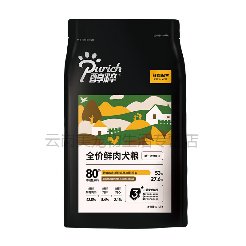醇粹(Purich)黑标狗粮鲜肉全价冻干成犬幼犬粮纯粹小型犬 鲜肉配方鸡肉冻干犬粮1.5kg*1 1.5kg /包