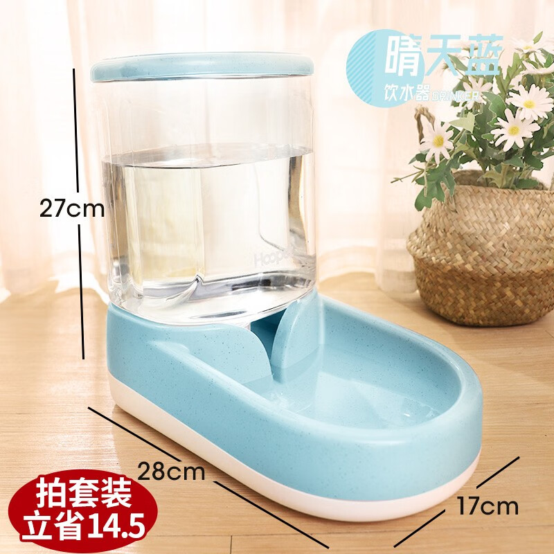 路小雅超大容量宠物自动喂食器大型犬狗狗饮水机狗盆猫碗喂水投食器不插 晴天蓝饮水器-3.8L超大容量