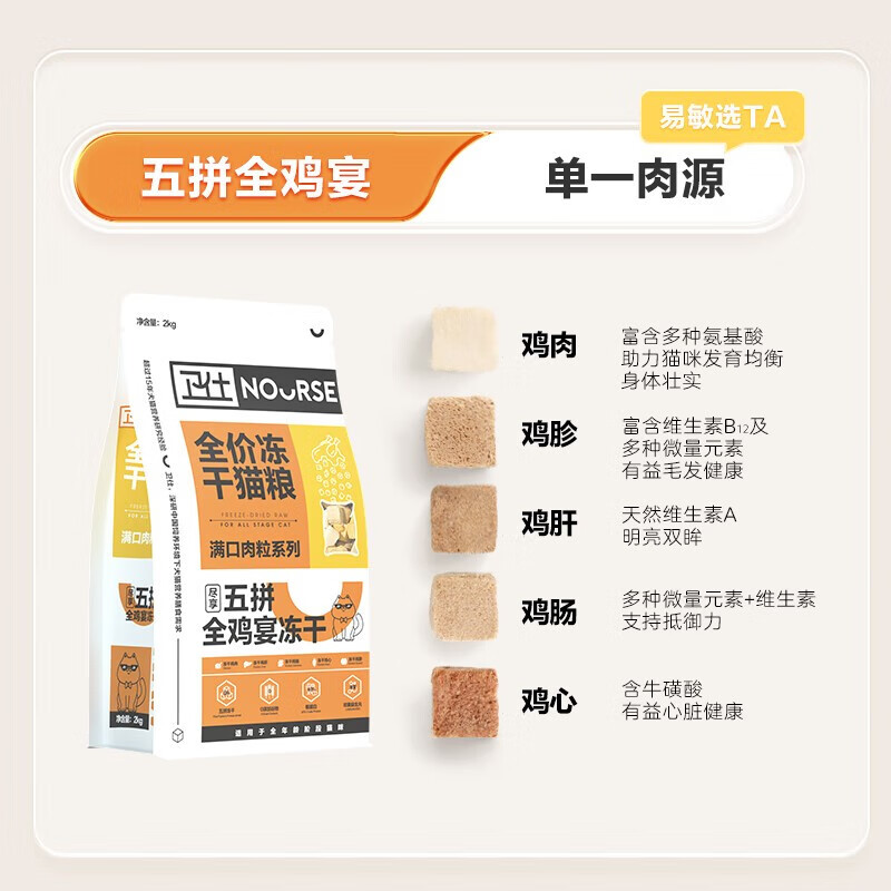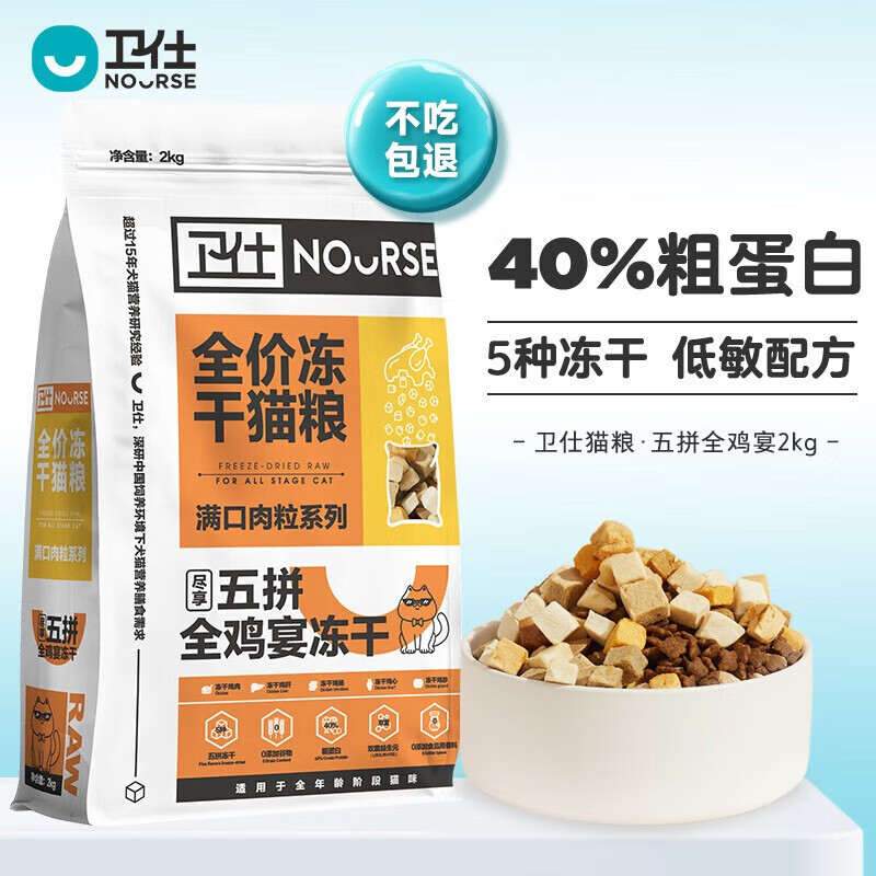 卫仕全价膳食平衡系列全价猫粮猫干粮小颗粒 五拼冻干全鸡宴猫粮2kg