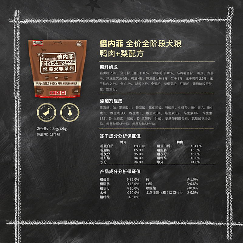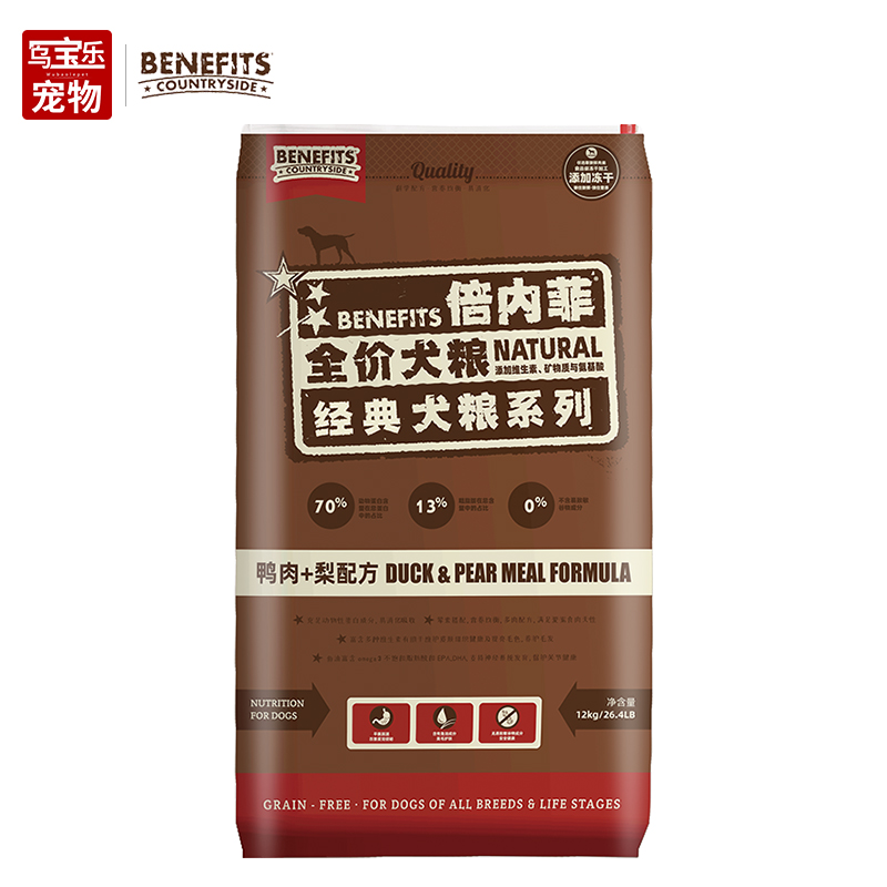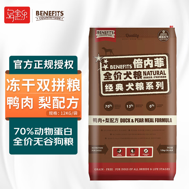 倍内菲无谷冻干狗粮 全价粮成犬幼犬金毛哈士奇柯基法斗柴犬通用型 经典款|鸭肉梨配方12kg