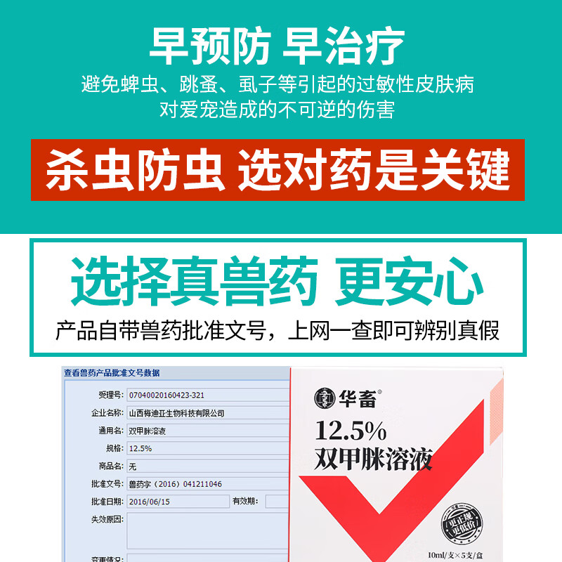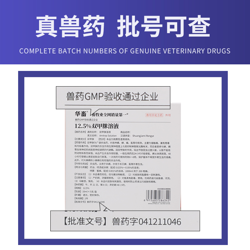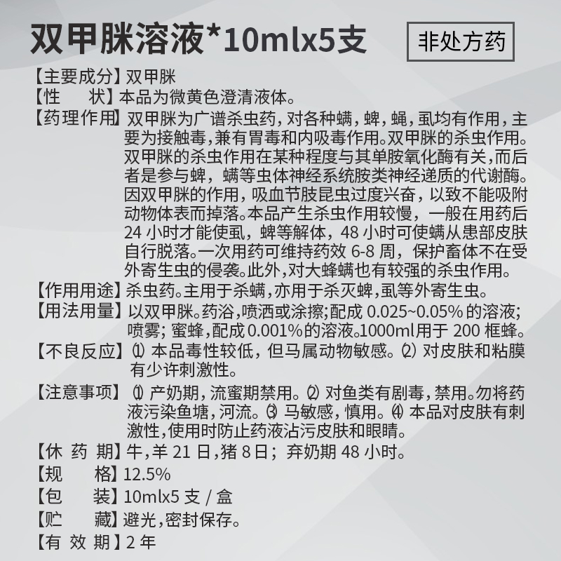 华畜 双甲脒溶液 兽用12.5%双甲咪溶液 狗狗螨虫虱子跳蚤蜱虫双甲米双甲眯宠物药品双甲咪