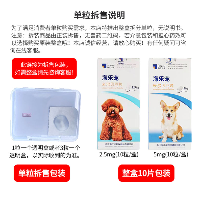海正动保海乐宠米尔贝肟片宠物狗狗体内驱虫药内外一体小型犬泰迪金毛中大型犬用螨虫耳螨打虫片 海乐宠2.5mg(三粒拆售)