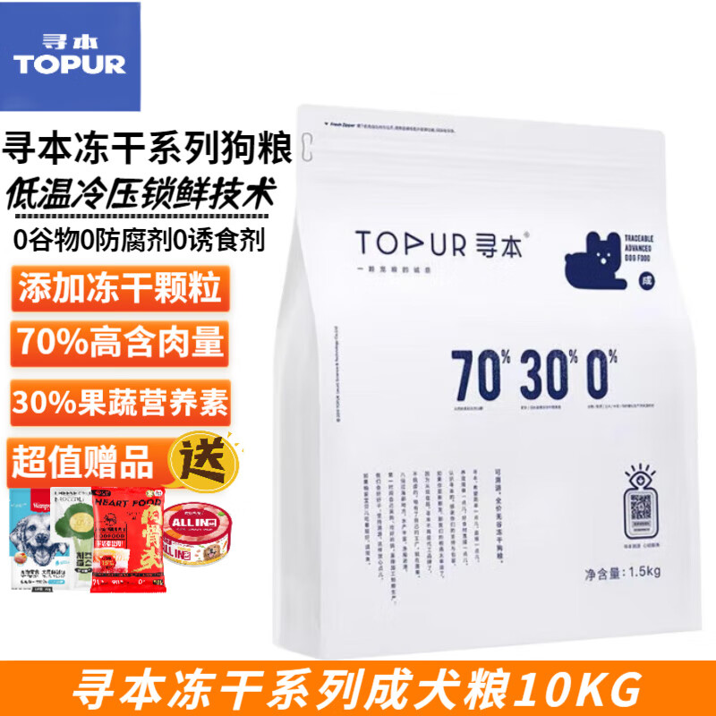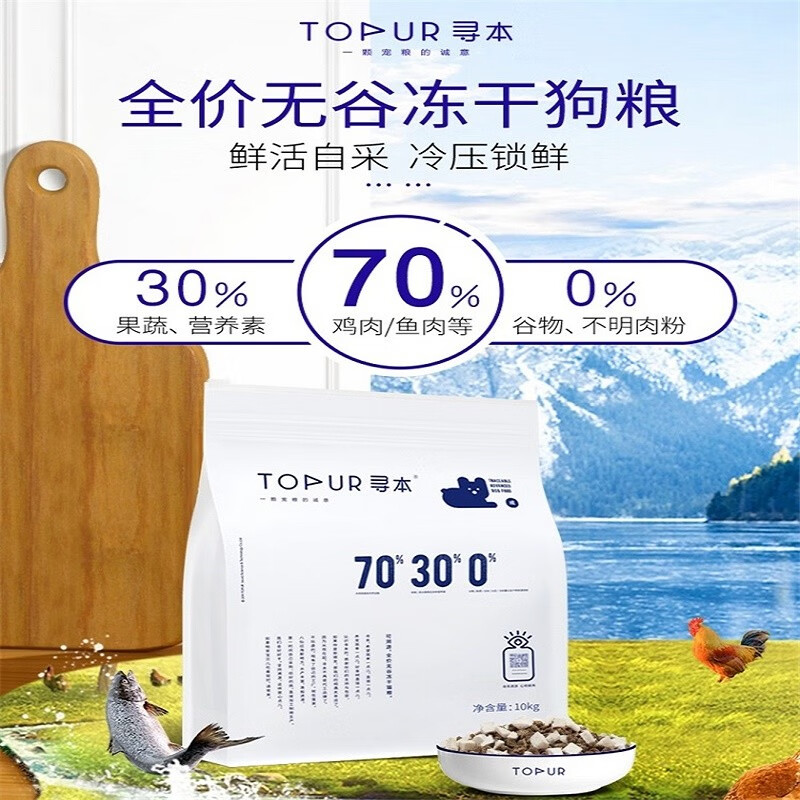 寻本狗粮日常系列无谷冻干全期通用粮柯基泰迪比熊博美大小型犬通用粮 10kg 70%(含冻干)成犬粮