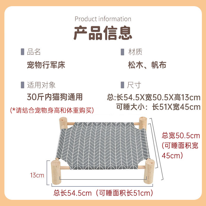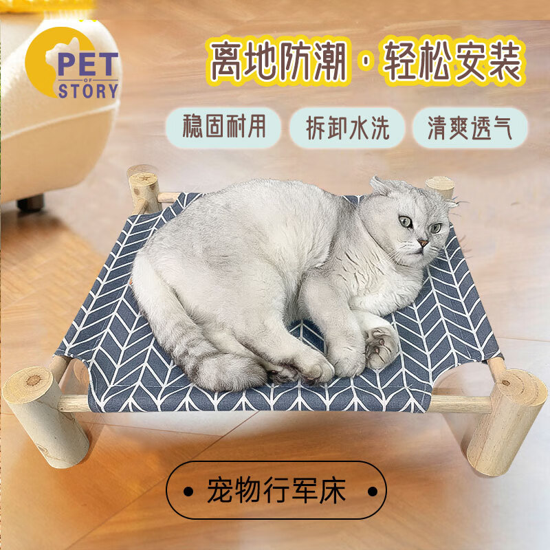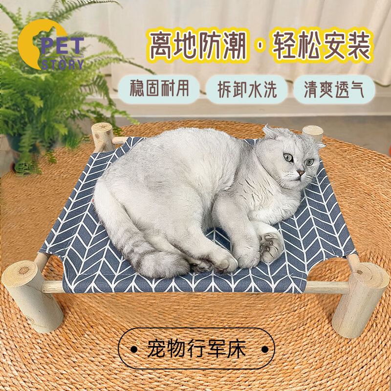 petofstory宠物行军床猫狗窝夏季狗床可拆洗木质四季通用猫垫子猫窝四季通用