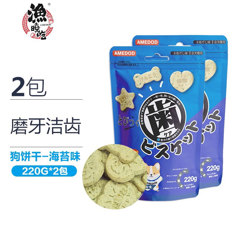 渔晓吃狗饼干220g*2包磨牙泰迪金毛狗狗训练互动宠物狗狗奖励零食 海苔味2包
