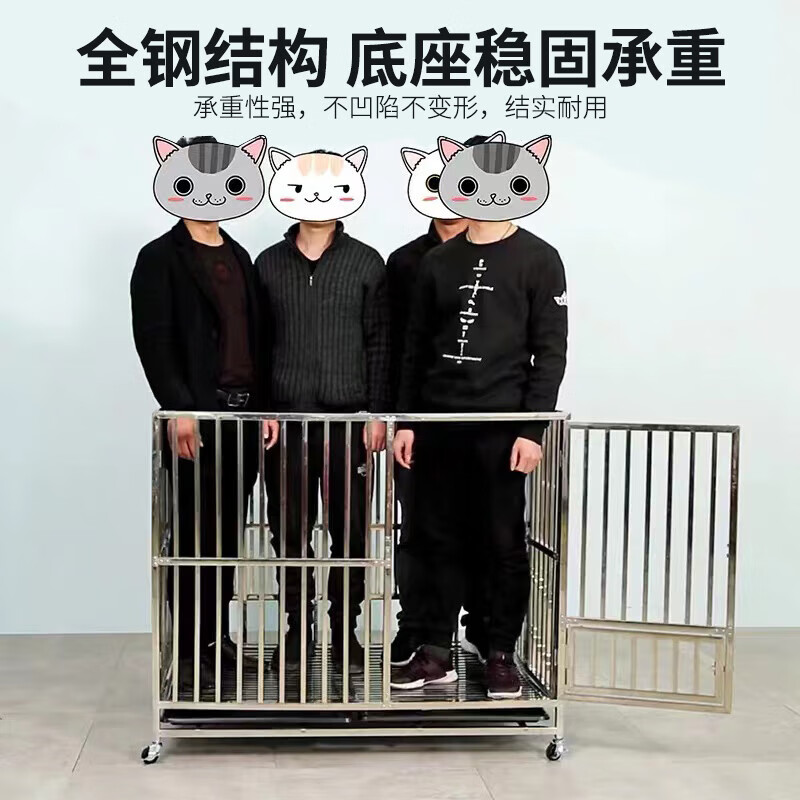 HKML*不锈钢狗笼子中大型犬室外折叠带厕所分离金毛拉布拉多方管宠物 加粗加厚长78宽52高72 泰迪 博美 折叠型