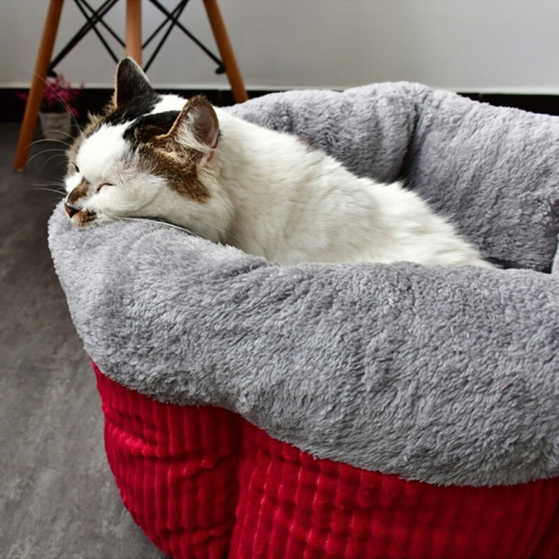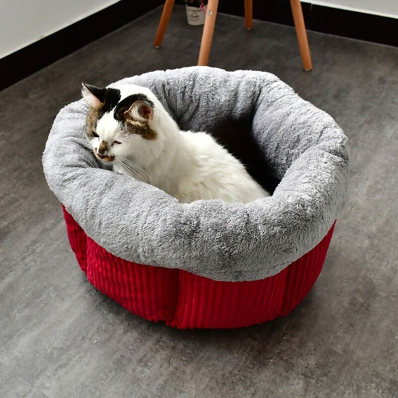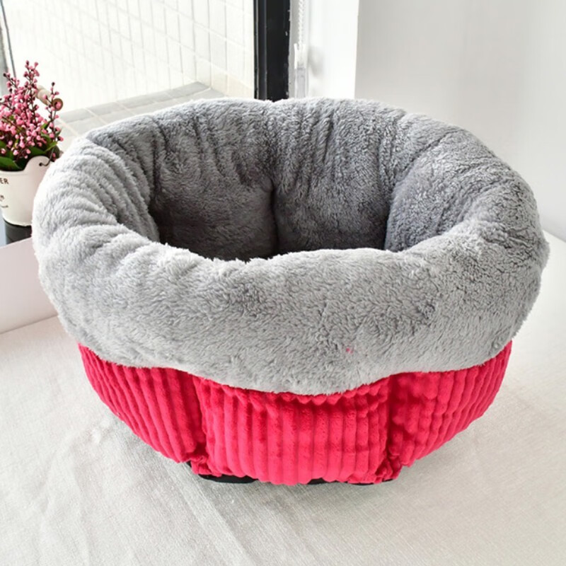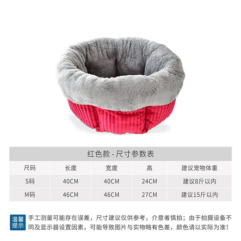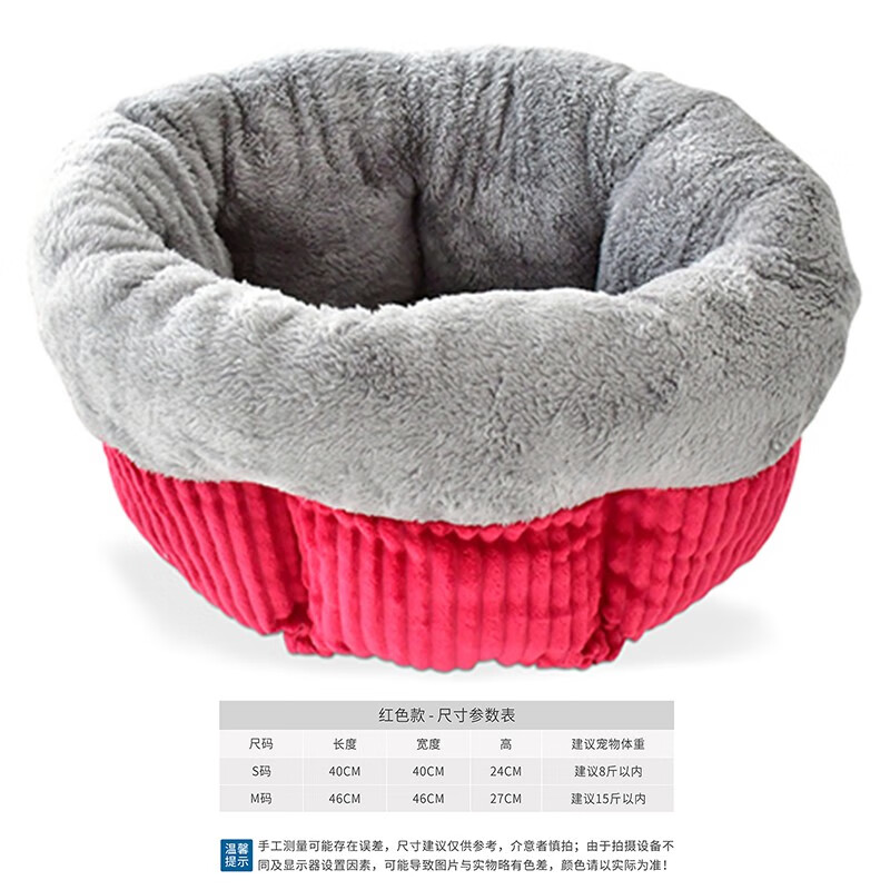 得酷(DEKU)猫窝狗窝宠物方形窝垫保暖棉垫棉窝冬季可机洗 深度睡眠圆窝 枣红色 M
