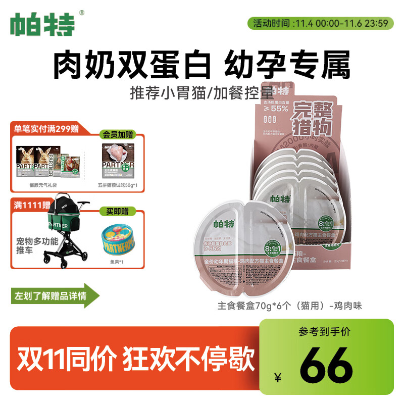 帕特主食餐盒全价猫主食罐成幼猫罐头增肥补水猫咪湿粮70g 鸡肉(幼孕适用) 70g*6个