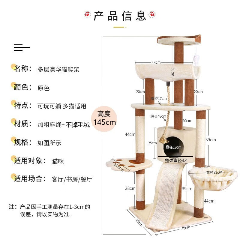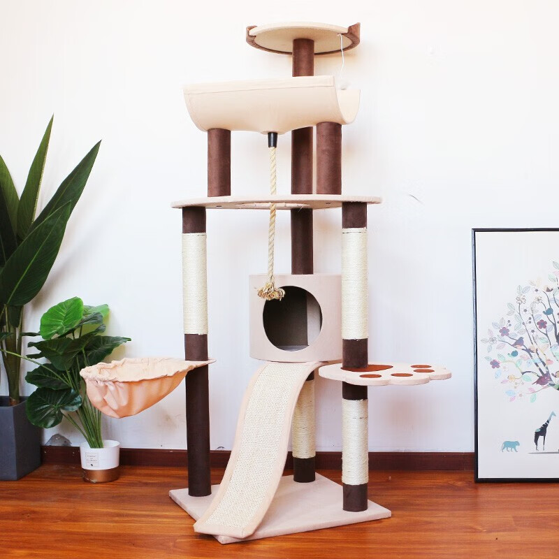 贝尼宠 猫爬架 大型三层以上耐抓猫抓板宠物猫玩具猫架子猫树 咖拼米高端多层猫爬架145cm