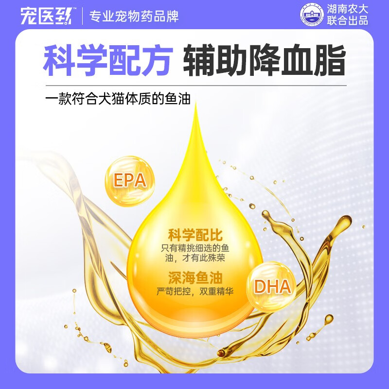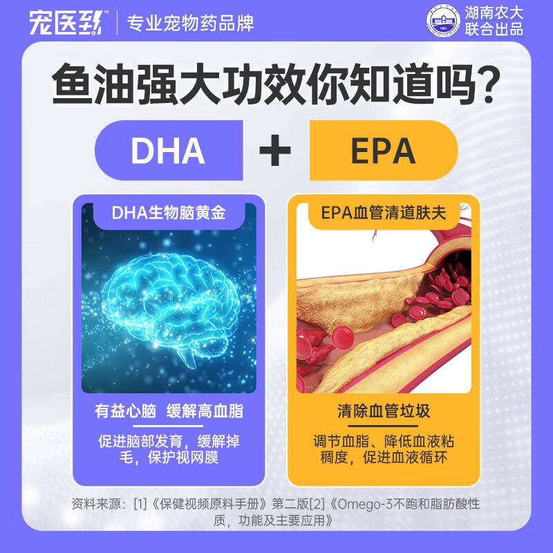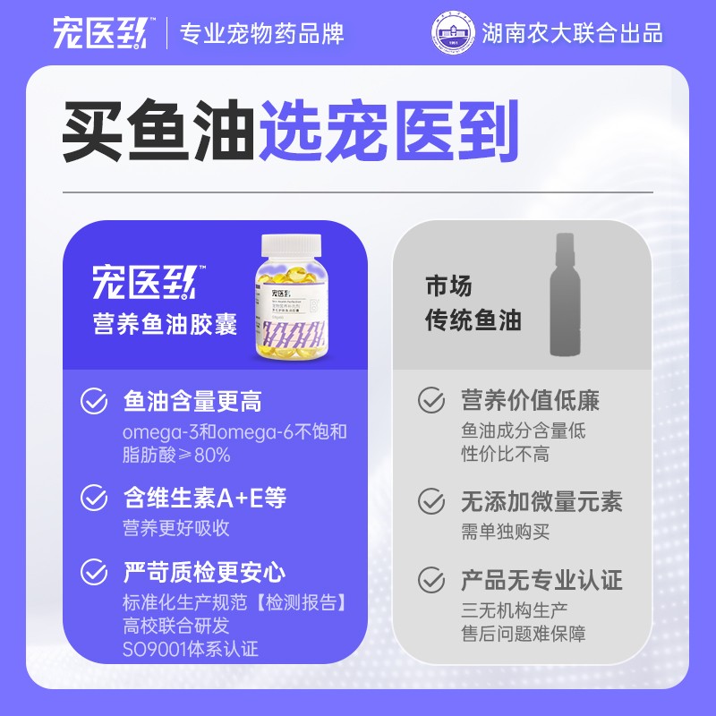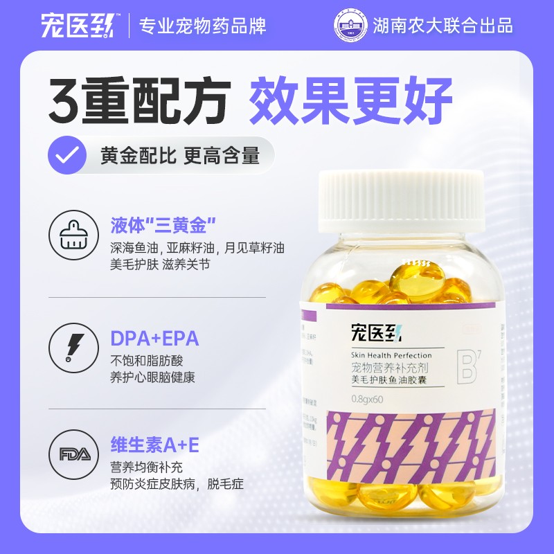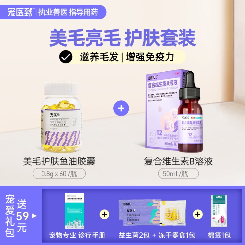 宠医到 宠物鱼油狗狗猫咪含DHA卵磷脂3倍浓缩 三文鱼油美毛亮毛防掉脱毛护肤健脑护眼营养保健品猫犬用 鱼油胶囊1瓶/60粒 复合维生素B溶液
