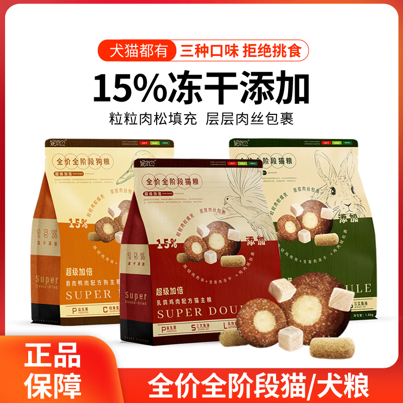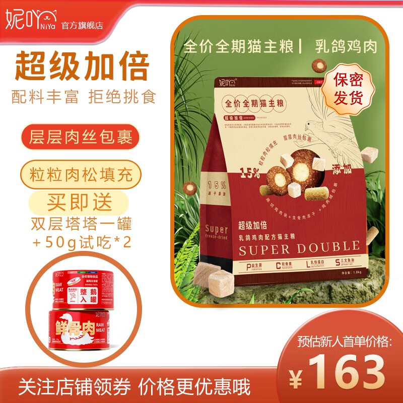 妮吖猫粮狗粮1.8kg高蛋白拒绝挑食全价成幼猫主粮 超级加倍 【15%冻干】乳鸽鸡肉 猫用主粮 1.8kg正装(含试吃)