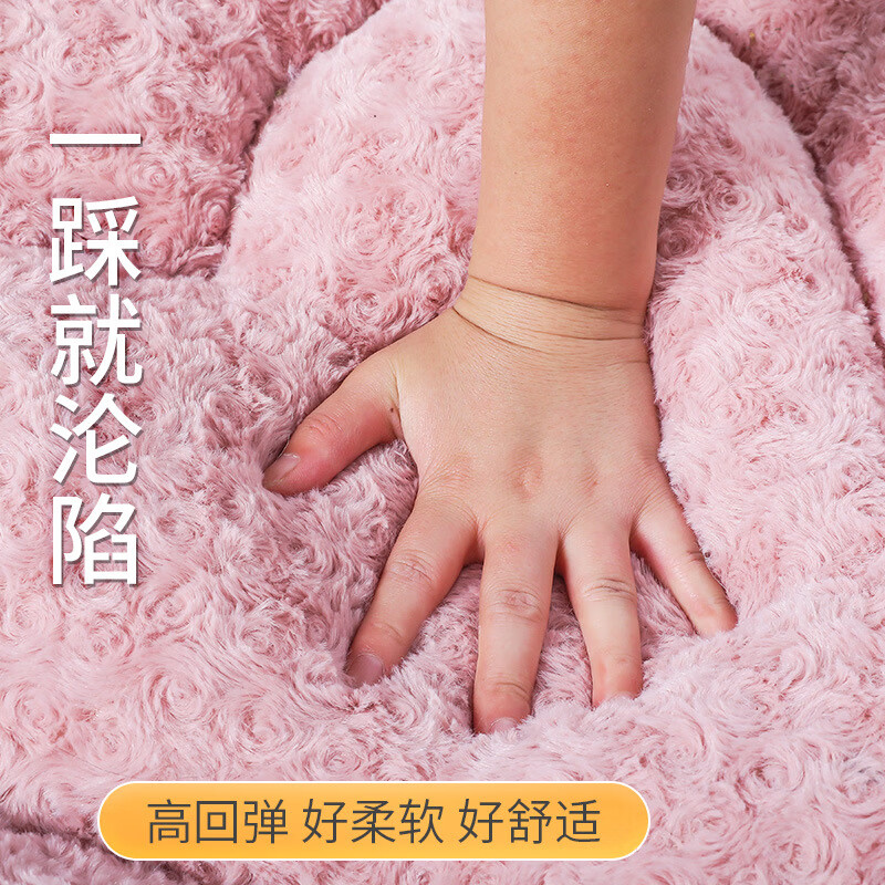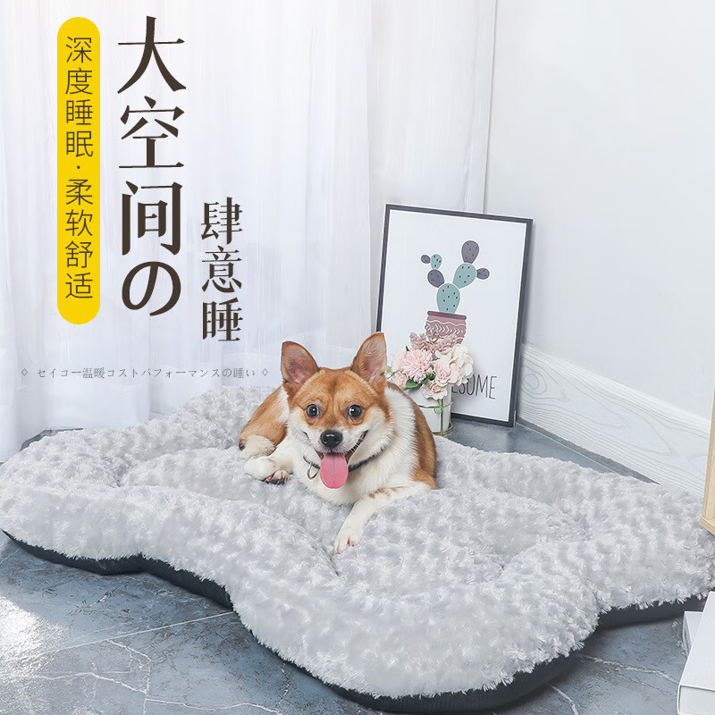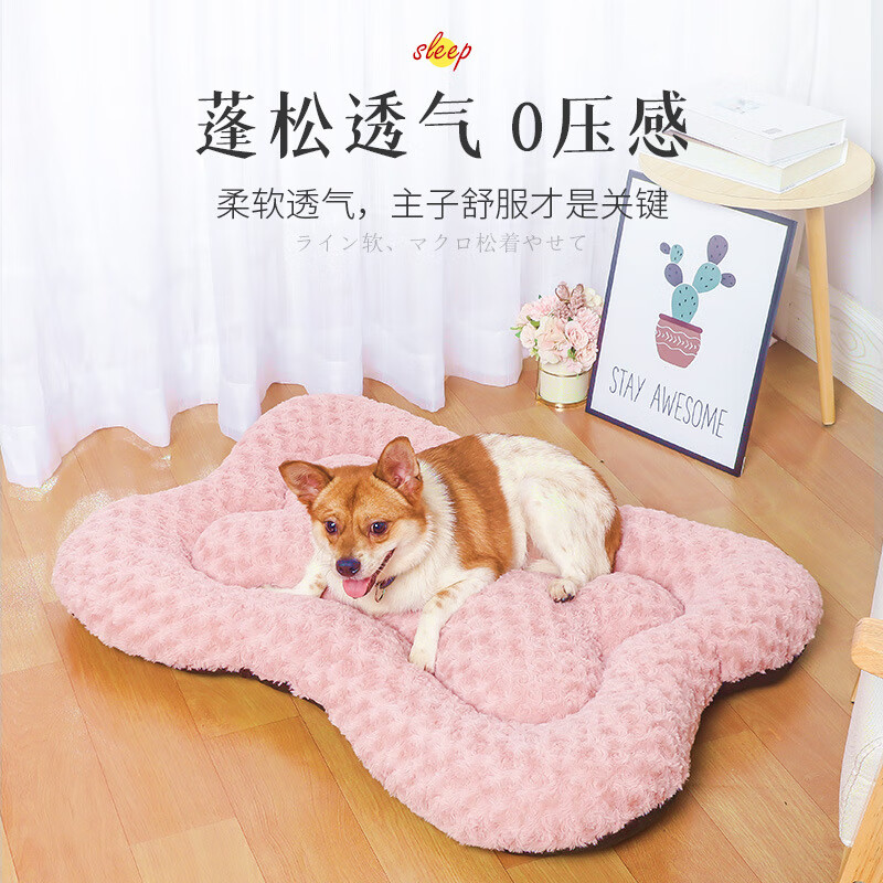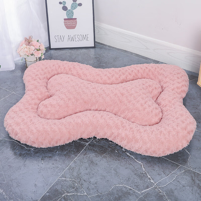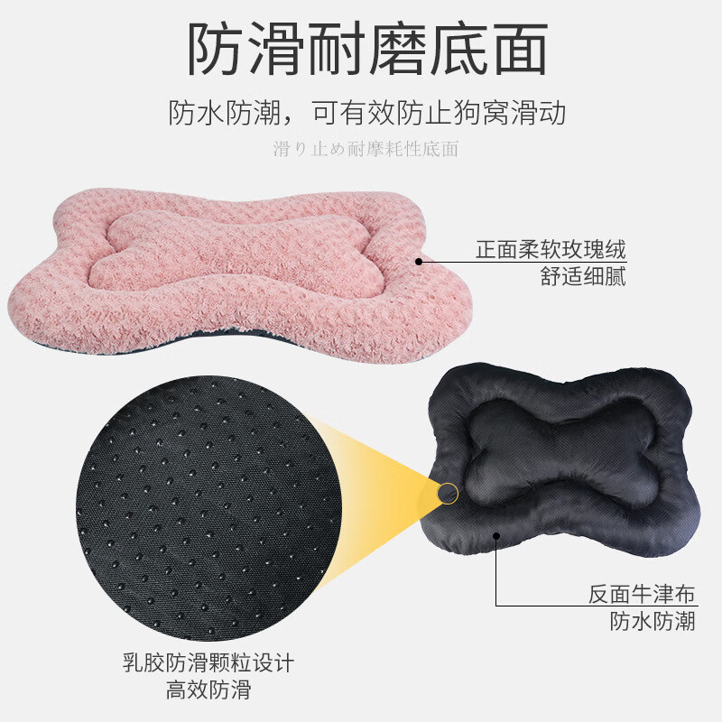 短云新款四季通用玫瑰纹骨头垫猫垫狗垫大小型犬猫猫垫狗狗用品 玫瑰绒粉色 80*50