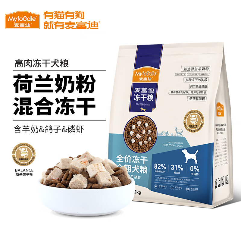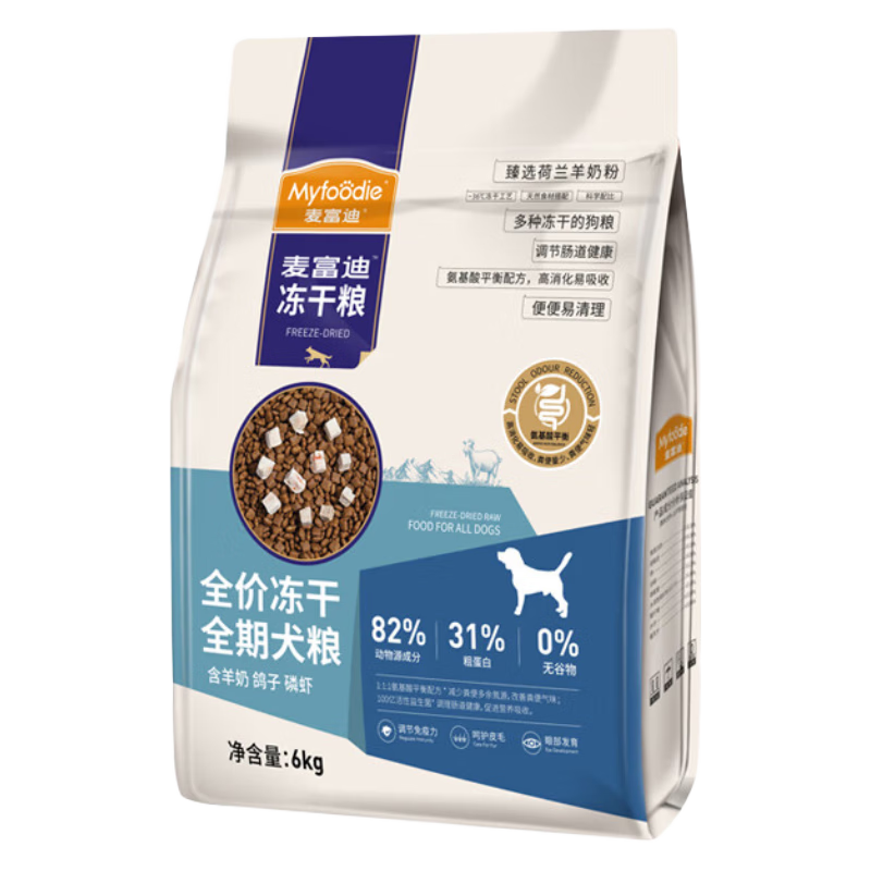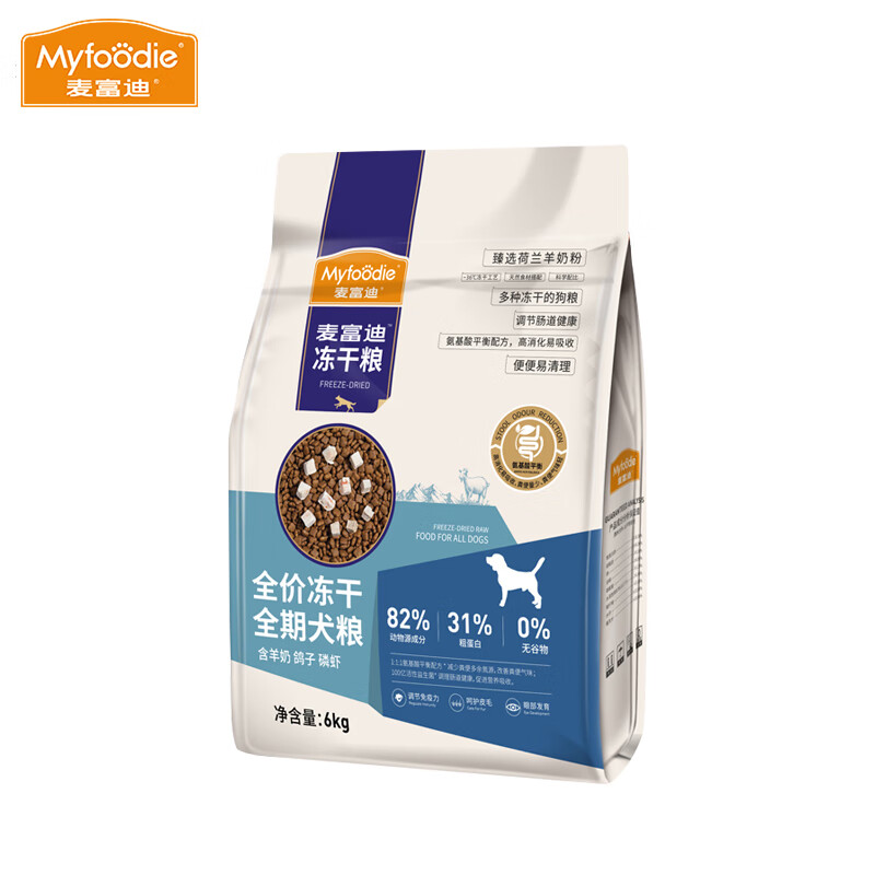 麦富迪(Myfoodie)全价冻干狗粮 泰迪博美萨摩耶全期通用无谷粮 羊奶鸽子肉 鳞虾全期狗粮6kg