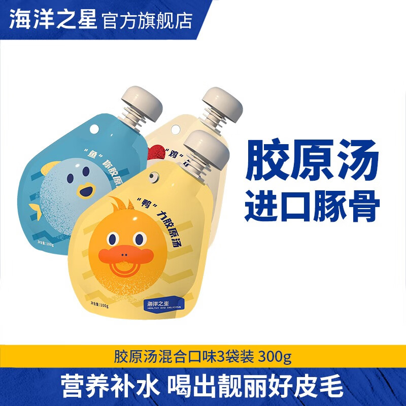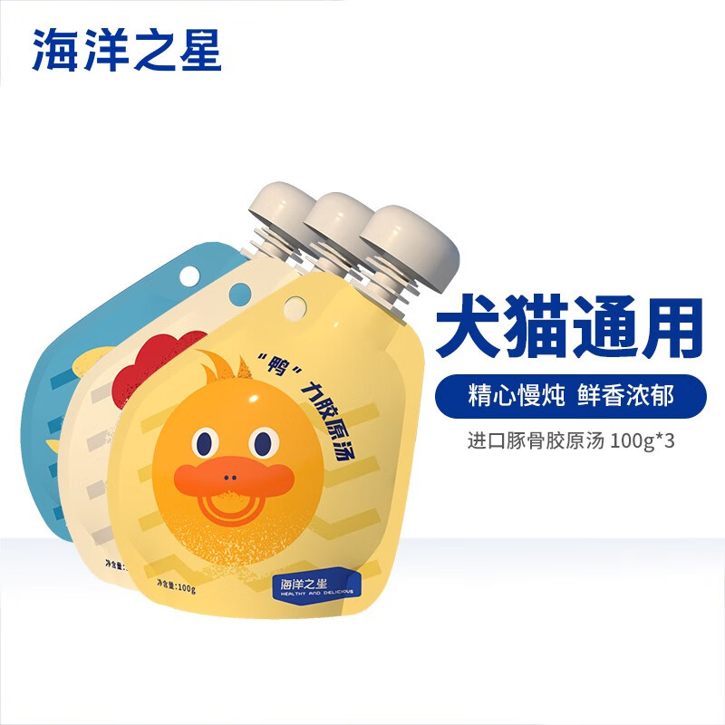 海洋之星 宠物猫狗零食即食胶原浓汤包幼猫狗狗零食湿粮罐头营养品补水 汤包混合鸡鸭鱼口味 100g*3