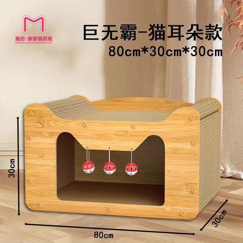 猫后宠物玩具猫抓板窝不掉屑猫抓盆瓦楞纸猫咪玩具防猫抓磨爪板大型猫窝圆形碗形猫抓板椭圆l形猫抓板立式 巨无霸沙发猫屋80长30宽30高CM