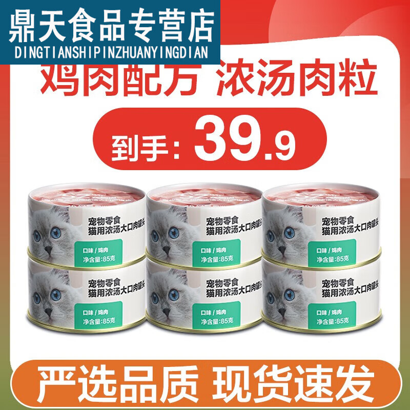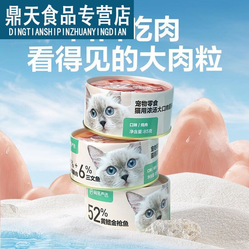 网易严选宠物猫罐头猫粮猫湿粮宠物零食猫用浓汤大口肉罐头 鸡肉85g*6罐