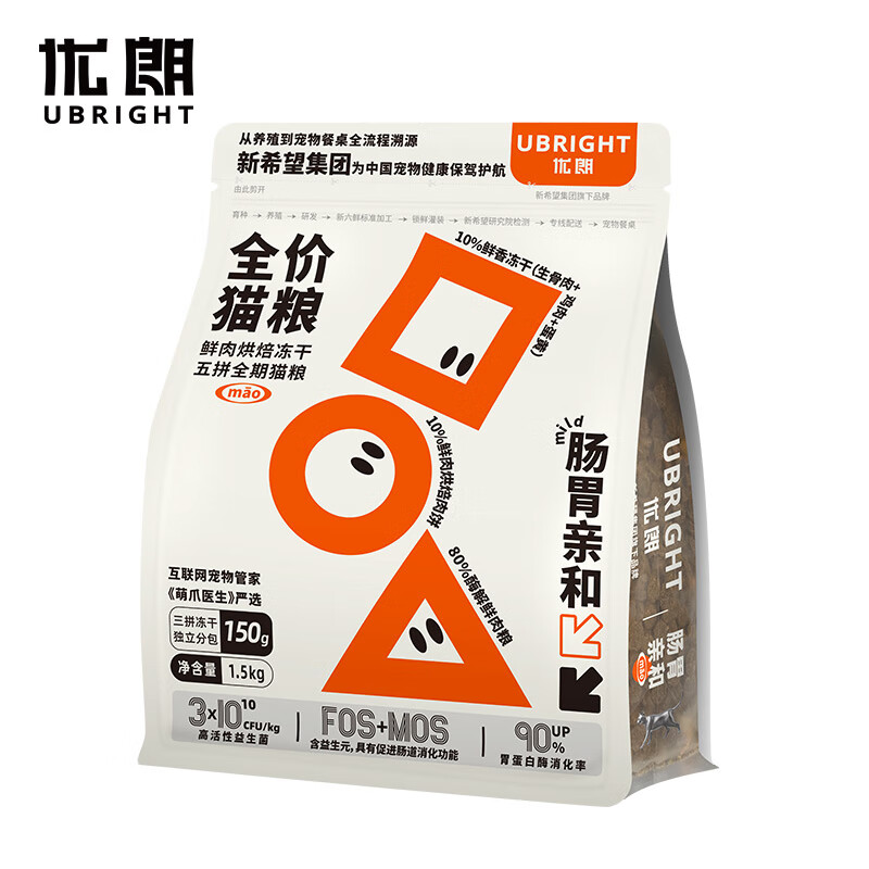 优朗新希望肠胃亲和益生菌冻干五拼鲜肉低温烘焙猫粮全期猫粮1.5kg