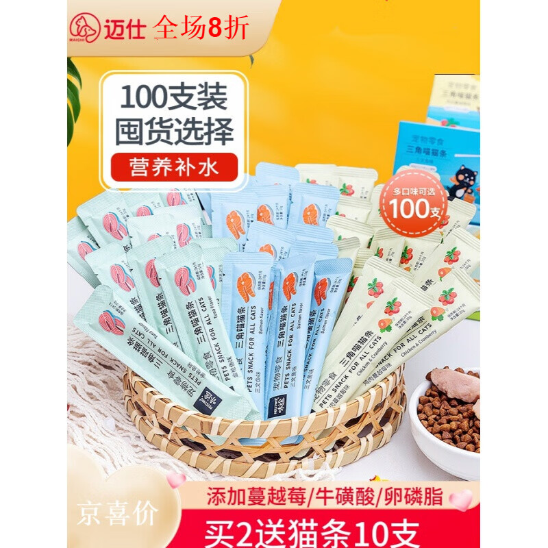 迈仕猫条10g*100支整箱 猫咪零食营养增肥幼猫用品奶糕湿粮猫罐头无诱食剂 混合口味10g*60支【金枪鱼/三文鱼/鸡肉蔓越莓