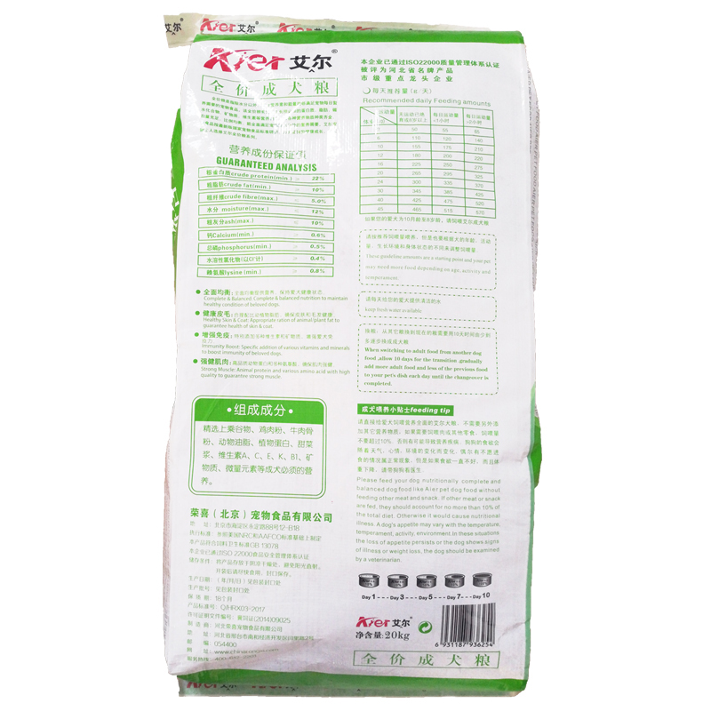 艾尔狗粮星期六全价狗粮金毛拉布拉多边牧德牧阿拉斯加泰迪马犬哈士奇20kg 成犬粮 20kg