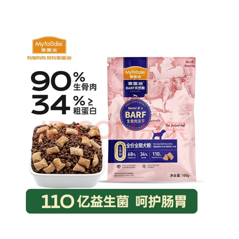 麦富迪(MYFOODIE)barf狗粮生骨肉主食冻干双拼天然粮成犬幼犬全犬种通用全价犬粮 试吃装100g