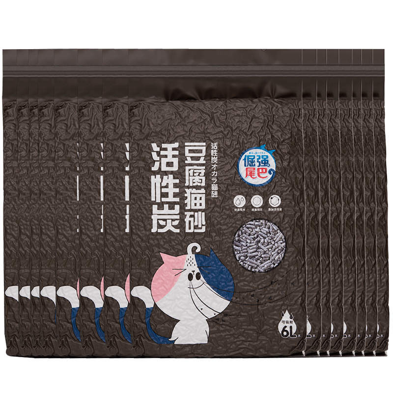 倔强的尾巴 活性炭豆腐猫砂结团低粉尘混合猫沙除味除臭去味可冲厕所 2.3kg*16包