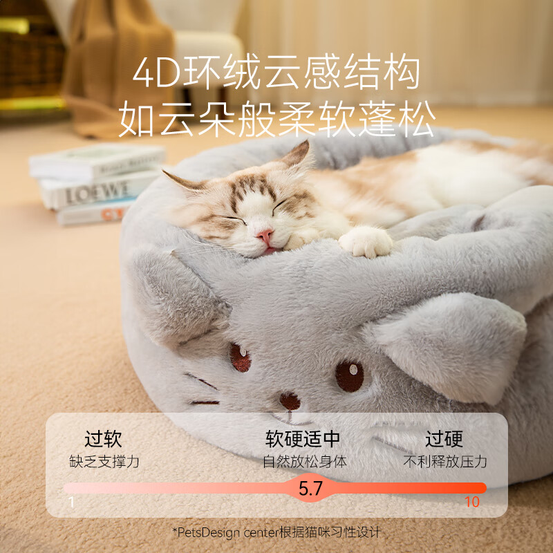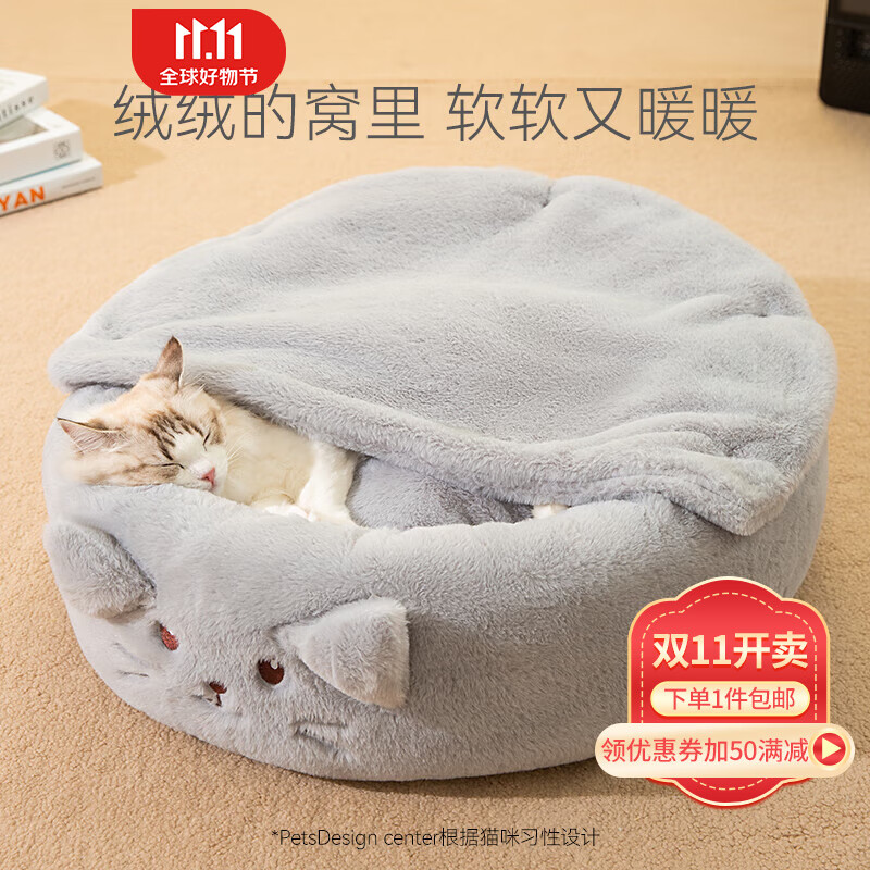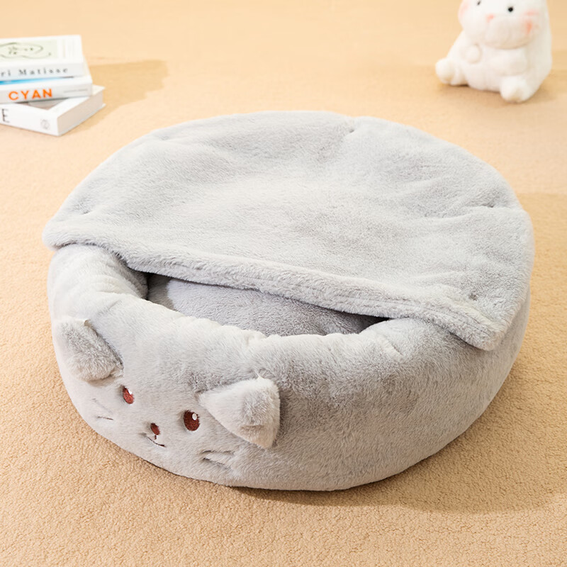嬉皮狗(hipidog)猫窝冬季保暖封闭式猫咪窝网红幼猫垫子狗窝四季通用冬天宠物用品 灰色 M(建议体重15斤内)