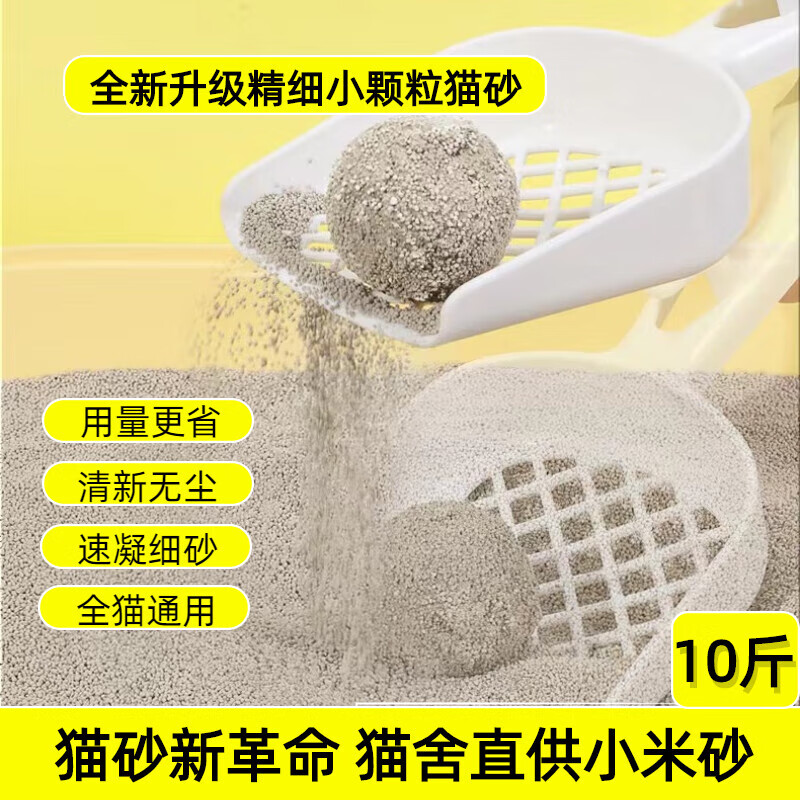 鹿凌青小米猫砂细沙20公斤除臭易结团特细小颗粒膨润土无尘40斤10 10斤 原味