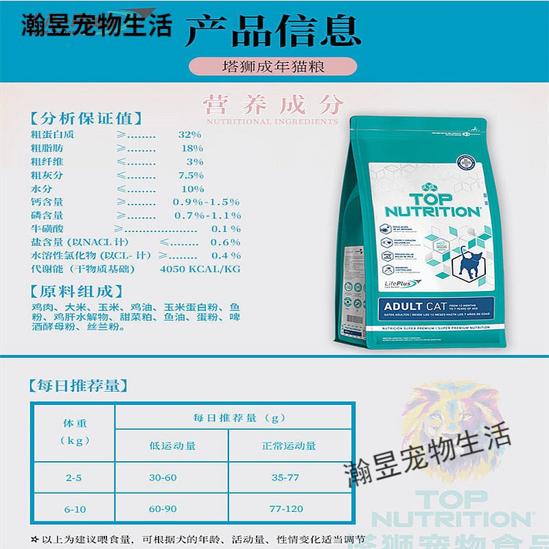 塔狮阿根廷塔狮猫粮2公斤原装增肥发腮成猫幼猫粮英短 7.5公斤成猫粮