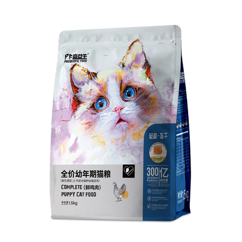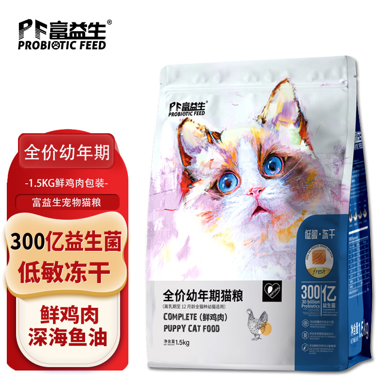 富益生(PF Probiotic Feed)低敏冻干全价幼年期猫粮1.5kg 幼猫无骨蓝猫英短布偶渐层加菲生骨肉通用粮