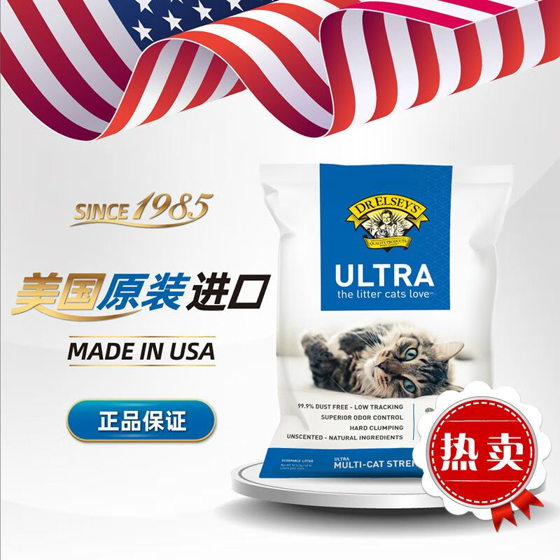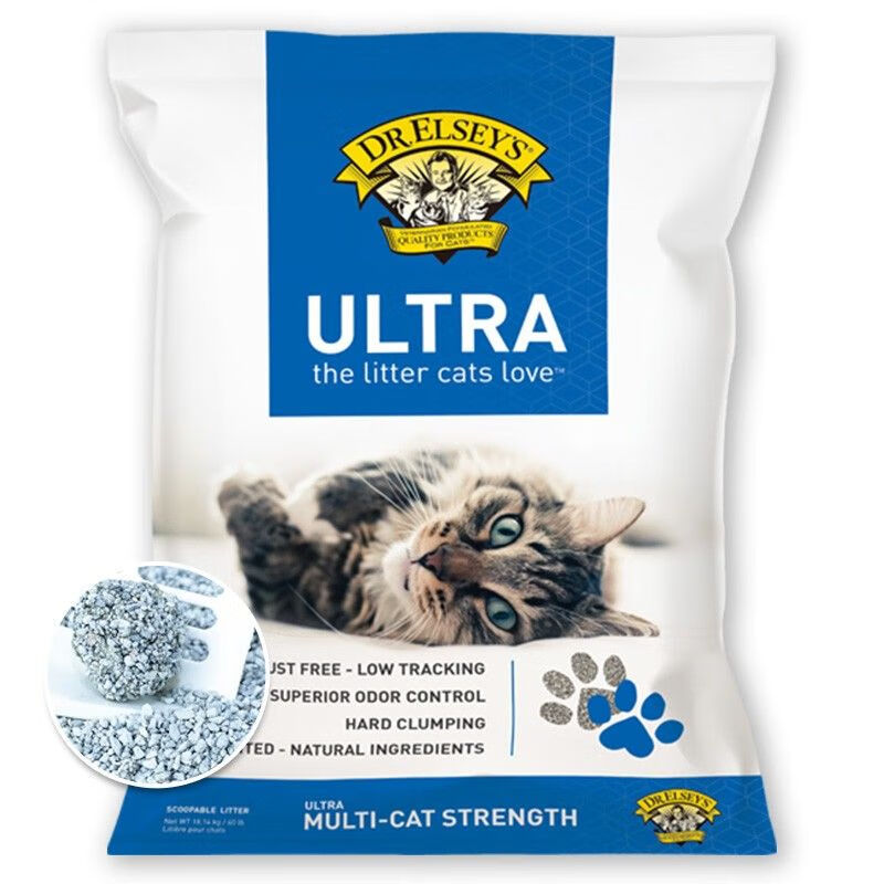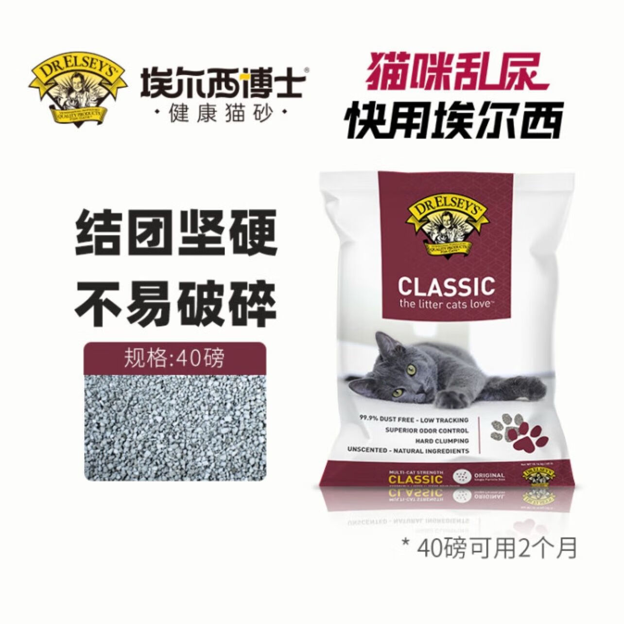 埃尔西博士DR.ELSEY’S 膨润土猫砂40磅 适用多猫 结团不粘底天然 红标-单猫款40磅