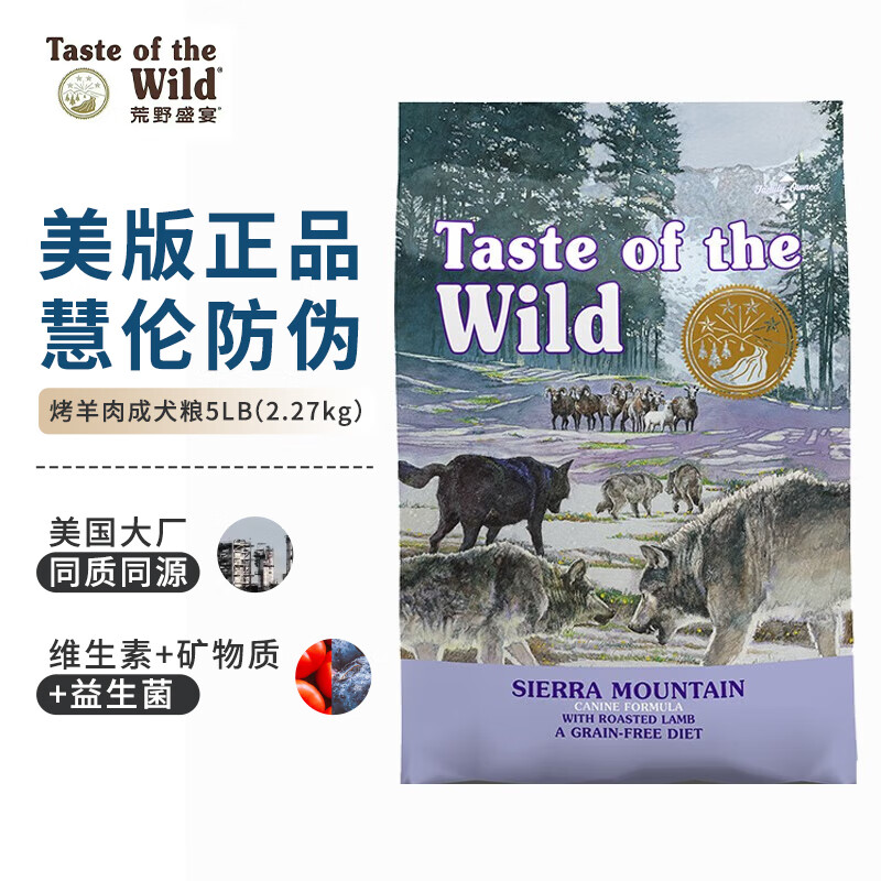 荒野盛宴烤羊肉配方(全犬粮)无谷通用狗粮 5磅/袋(2.27kg)