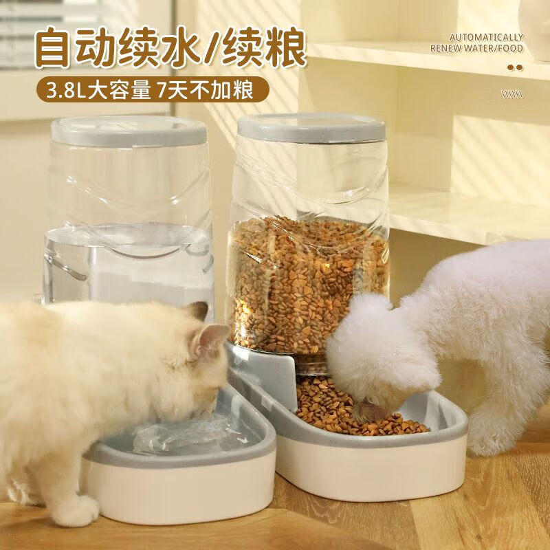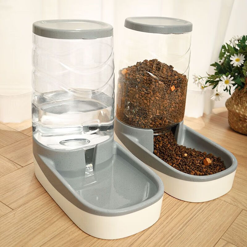 艺徒狗狗饮水机猫自动喂食器狗喂水猫咪喝水流动水不插电水壶宠物用品 【新款组合装】薄墨灰-饮水 喂食