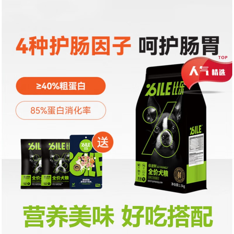 比乐狗粮极速鲜狗粮幼犬泰迪柯基金毛冻干犬粮全价狗粮成犬1.5kg 【鸡肉三文鱼】靓丽毛发 1.5kg *1袋