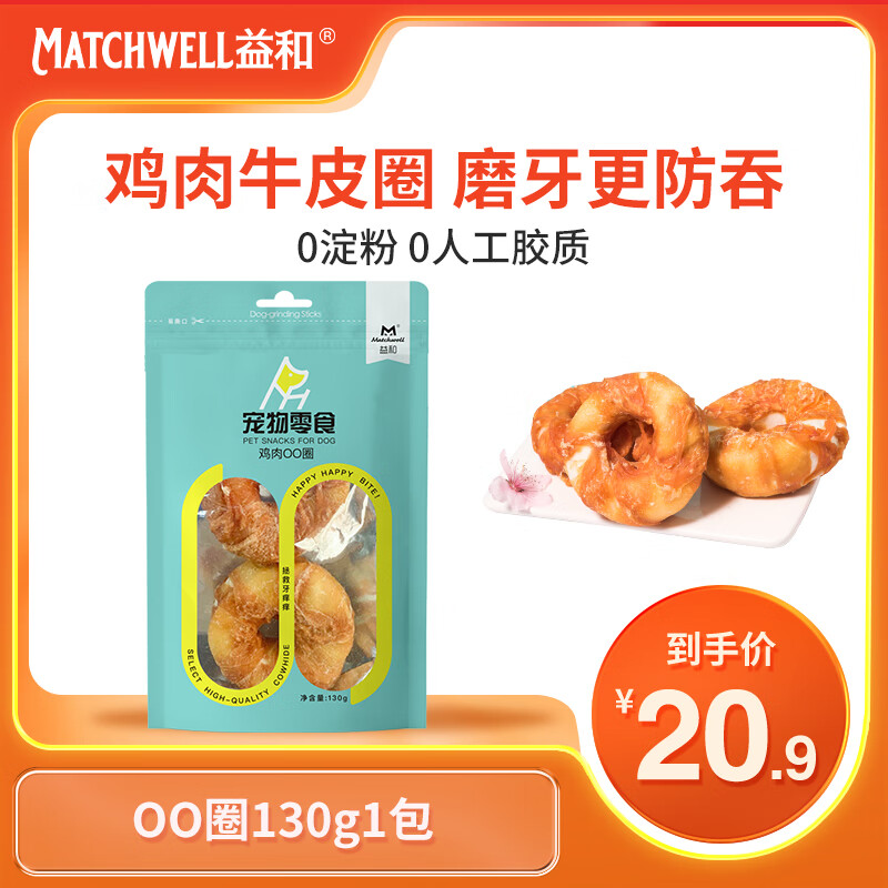 益和(MATCHWELL)磨牙棒狗狗零食中小型犬幼犬洁齿专用牛皮一米棒耐咬泰迪柯基通用 【OO圈】2个 全犬通用