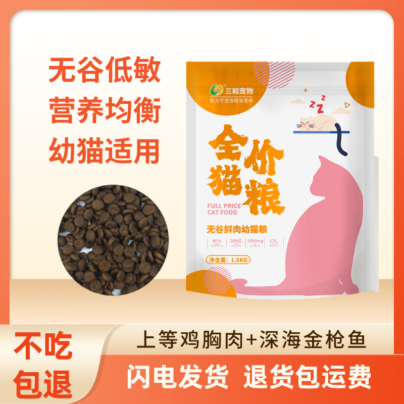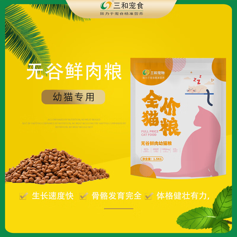 如意狗无谷鲜肉幼猫粮1.5kg益生菌高蛋白牛磺酸呵护猫咪敏感肠道易吸收