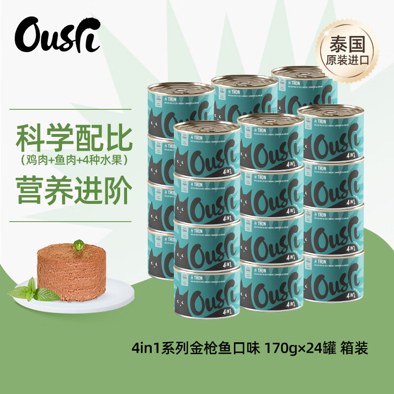 ousri心属泰国进口猫罐头4in1系列金枪鱼味170g*24罐整箱装