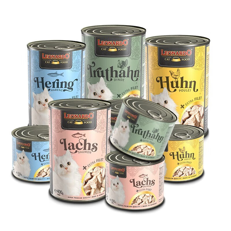 LEONARDO Premium CAT FOOD德国小李子菲力罐头猫罐头成猫幼猫罐主食湿粮天然无谷 三文鱼 火鸡肉片200g*6罐
