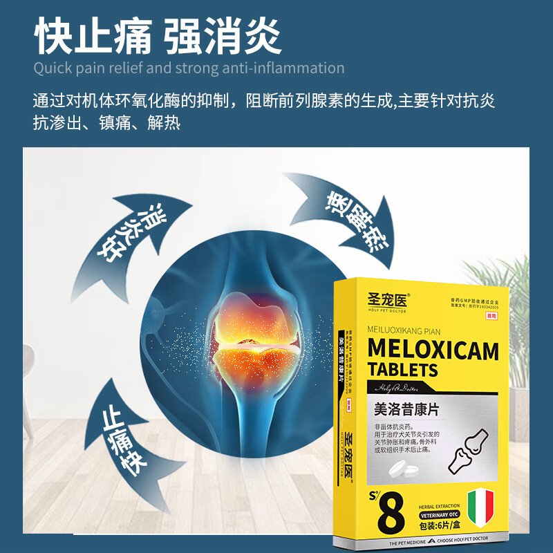 圣宠医美洛昔康片宠物狗狗关节消炎止疼片猫咪扭伤腿瘸骨折绝育术后止痛药