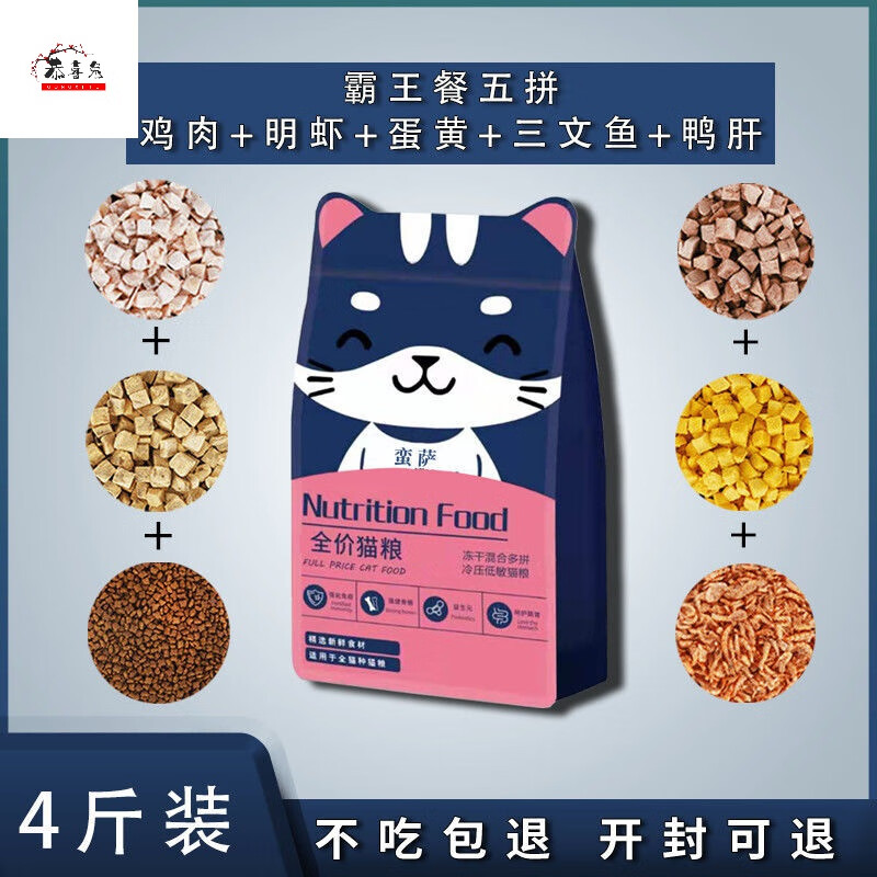 蕴朗 新品猫粮冻干五拼猫粮成幼年猫增肥发腮低油盐高营养通用型全阶段【京闪配送】 冻干六拼猫粮【五种冻干组合】 4斤【超值猫条】
