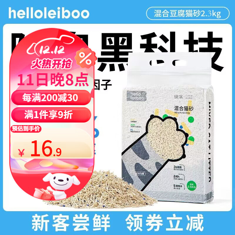 HELLOLEIBOO徕本纯豆腐猫砂幼猫专用除臭无尘可冲厕所1.5mm细猫砂天然原料 〖混合豆腐猫砂1.5mm〗1包*2.3KG