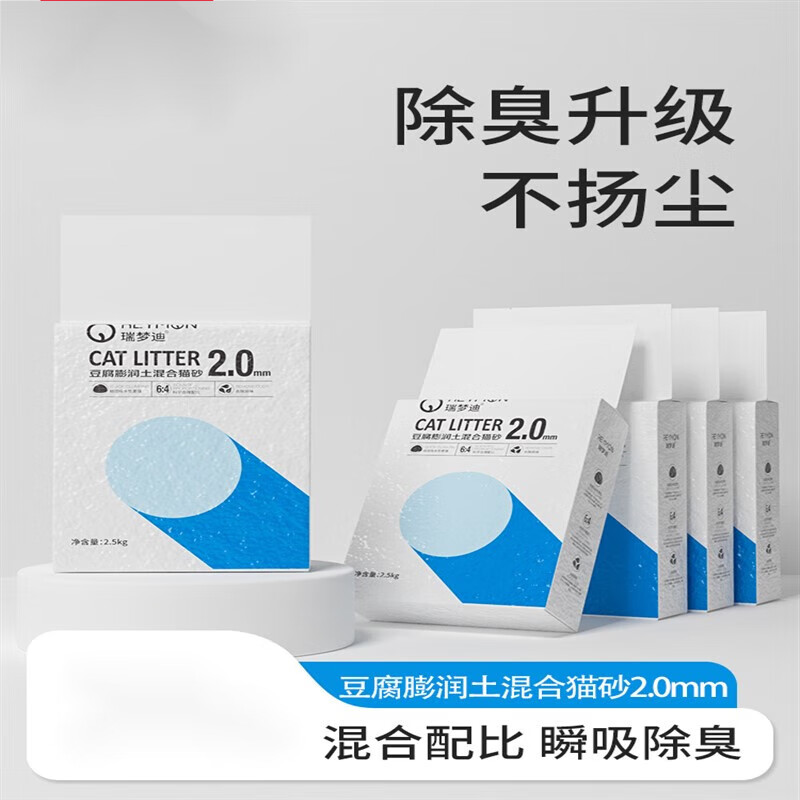 福丸瑞梦迪猫砂豆腐砂低粉尘除臭奶香原味结团膨润土混合猫沙 【】3合1混合猫砂2.5kg*5包【 2.5kg