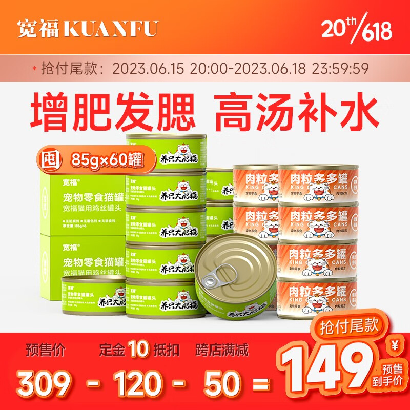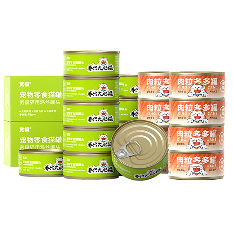 宽福猫罐头大王宠物零食猫湿粮猫主食猫咪营养白肉成猫零食罐头 【618预售】两种口味混合30罐