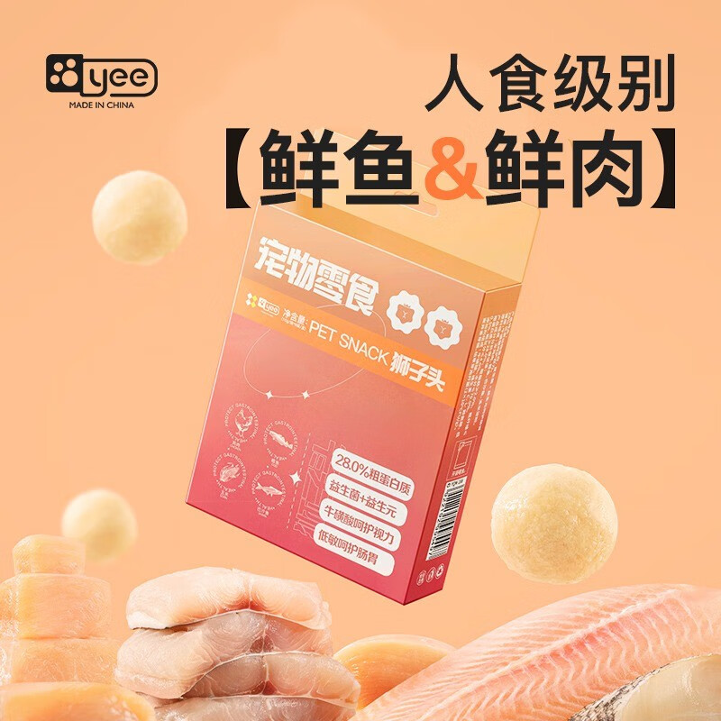 意品(YEE)宠物猫咪狗狗零食鲜肉小丸子猫狗罐头成幼猫营养品湿粮猫狗粮伴侣 宠物零食狮子头【8袋/盒】