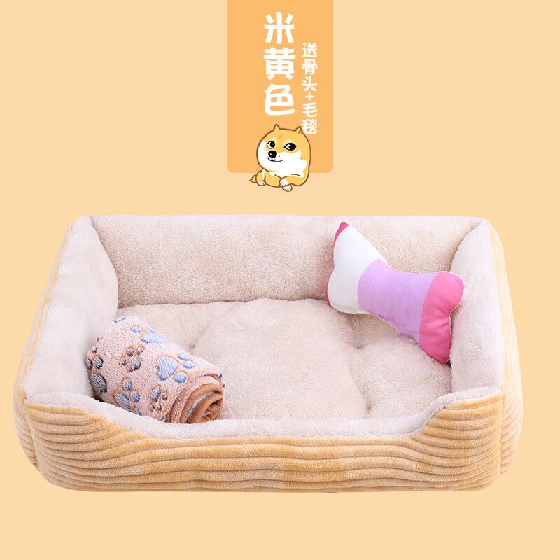 君哲宠物狗窝猫窝 宠物窝睡袋猫房子舒适幼犬床狗窝猫窝四季柔软蛋挞窝 米黄色窝 毛毯 玩具骨 45*35(建议5斤内)