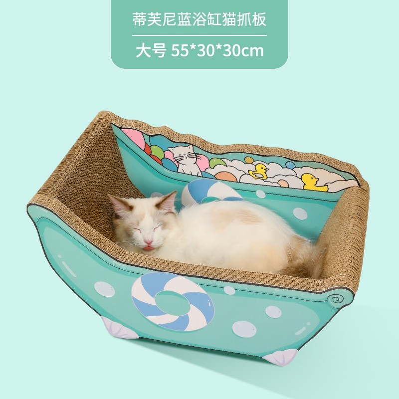 守爱 浴缸猫抓板窝瓦楞纸耐用不掉屑猫爪板耐磨立式磨爪器大号猫咪玩具 蒂芙尼蓝大号【18斤以内适用】