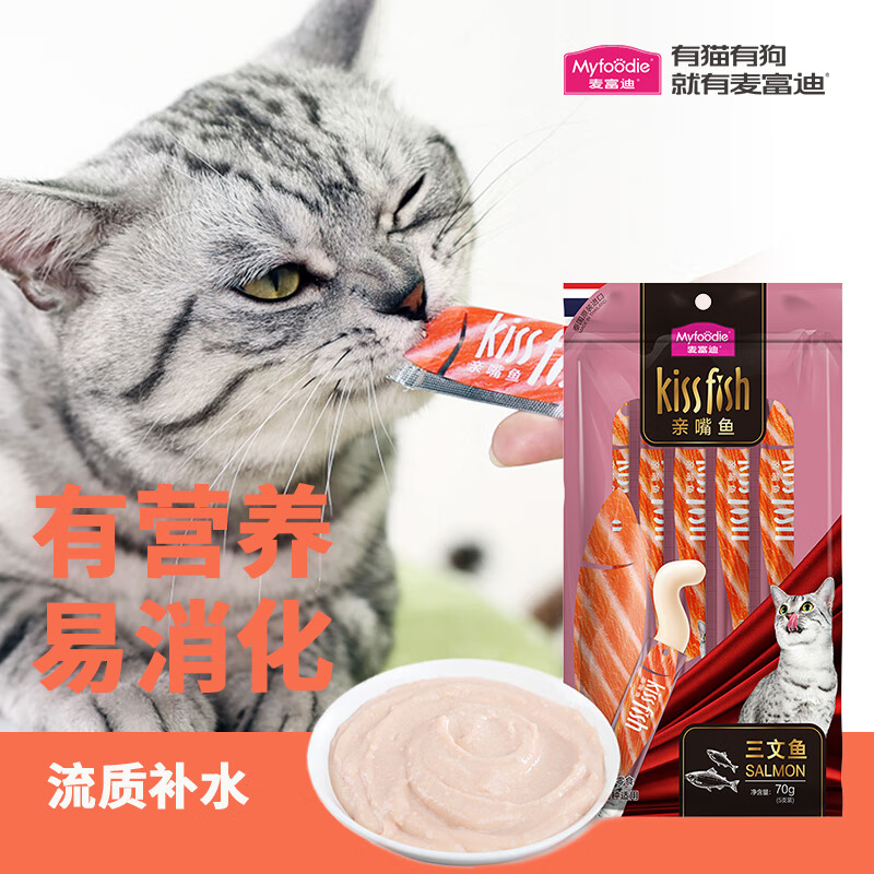 麦富迪猫条亲嘴鱼三包15支营养增肥发腮补水成猫幼猫零食湿粮罐头妙鲜包 三文鱼味 3包