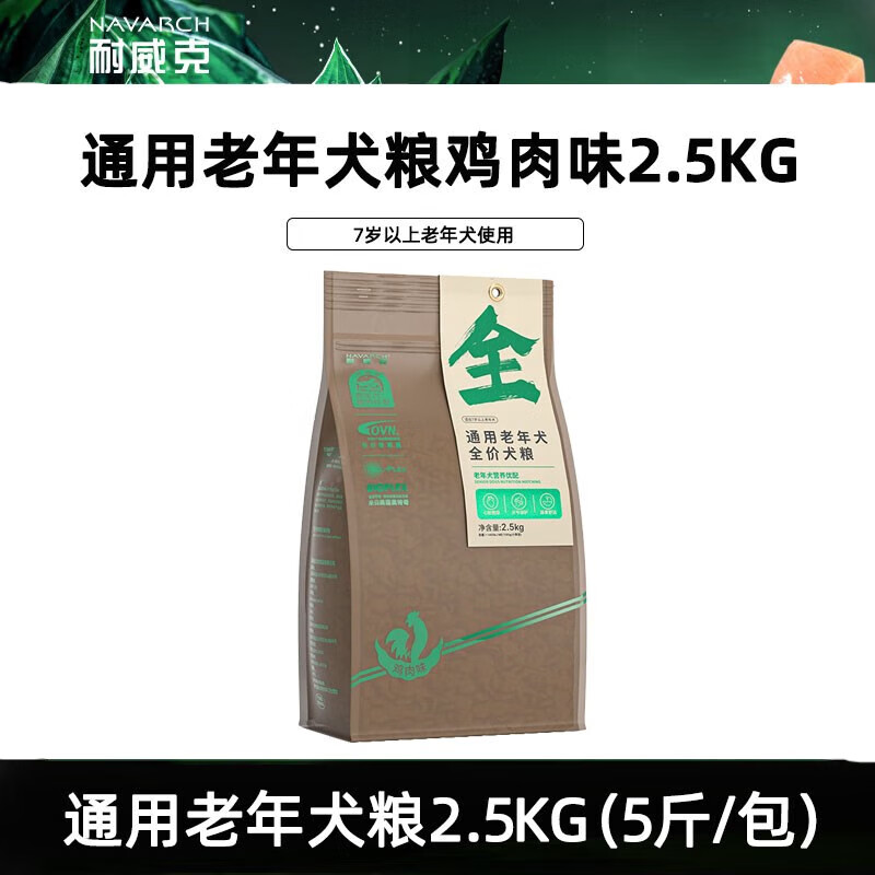 耐威克(Navarch)狗粮老年犬专用粮鸡肉味全犬种5斤宠物食品通用型犬粮2.5kg 鸡肉味呵护肠胃易消化 2.5/kg