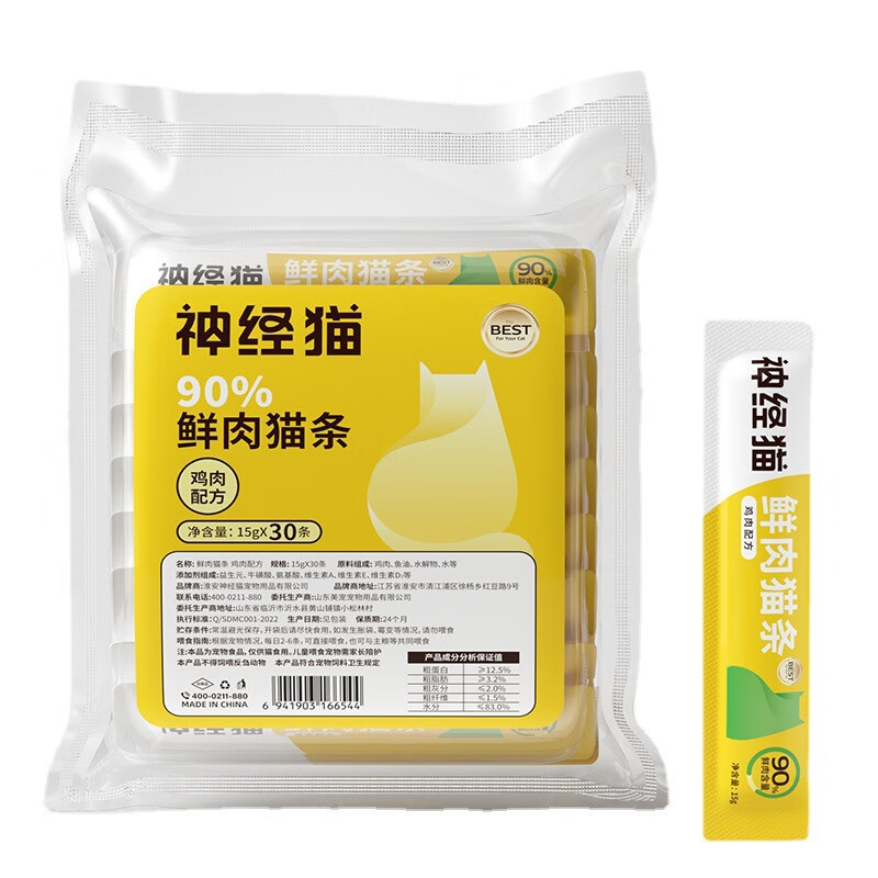 嬉皮狗(hipidog)猫咪零食猫条流质营养条成猫幼猫补水整箱鸡肉三文鱼宠物食品 鸡肉口味【65%含肉量】 15克*30支【450克】