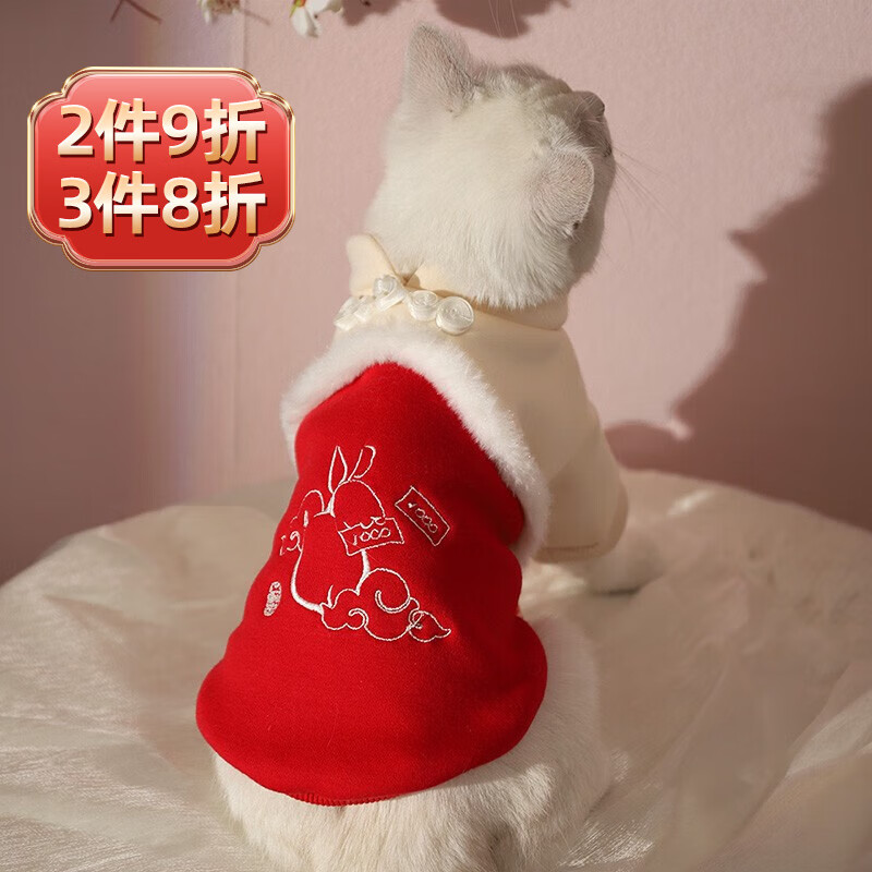 华元宠具(hoopet)猫咪衣服防掉毛秋冬幼猫可爱保暖衣冬季无毛猫加绒狗狗衣服小型犬 暴富兔子 红色卫衣 XL:建议体重11-13斤