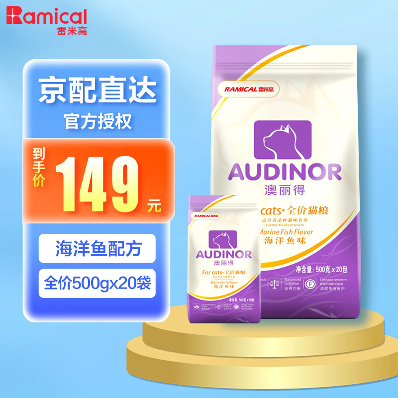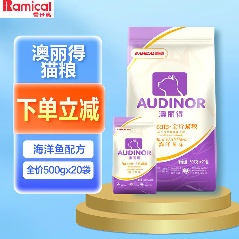 雷米高(RAMICAL)猫粮10kg20斤成猫幼猫粮海洋鱼味 通用型 500g*20包